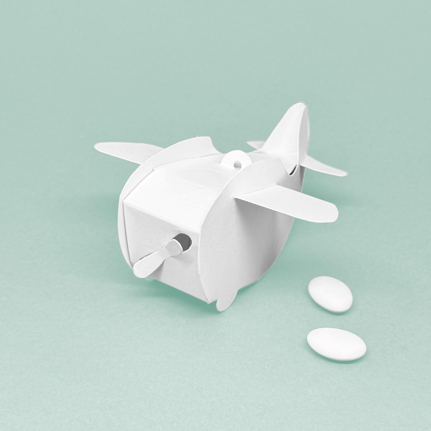 Vliegtuigdoosje – Doosje 3.5cm x 3.5cm x 3.4cm                        Max. 10 suikerbonen